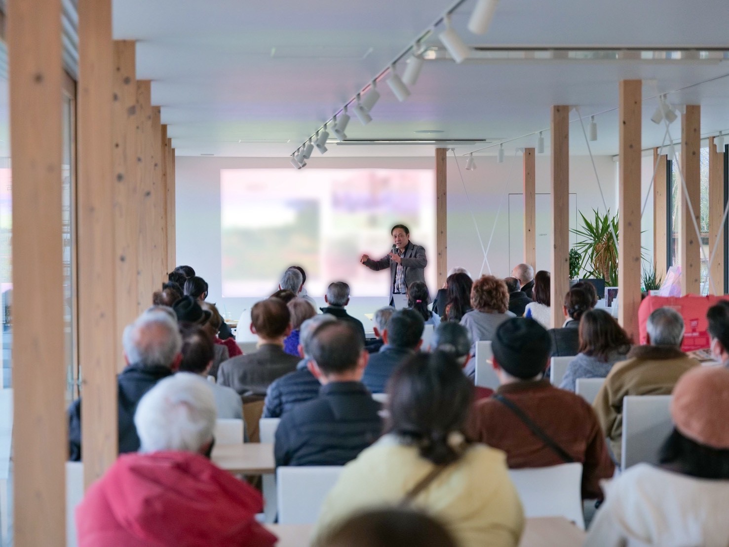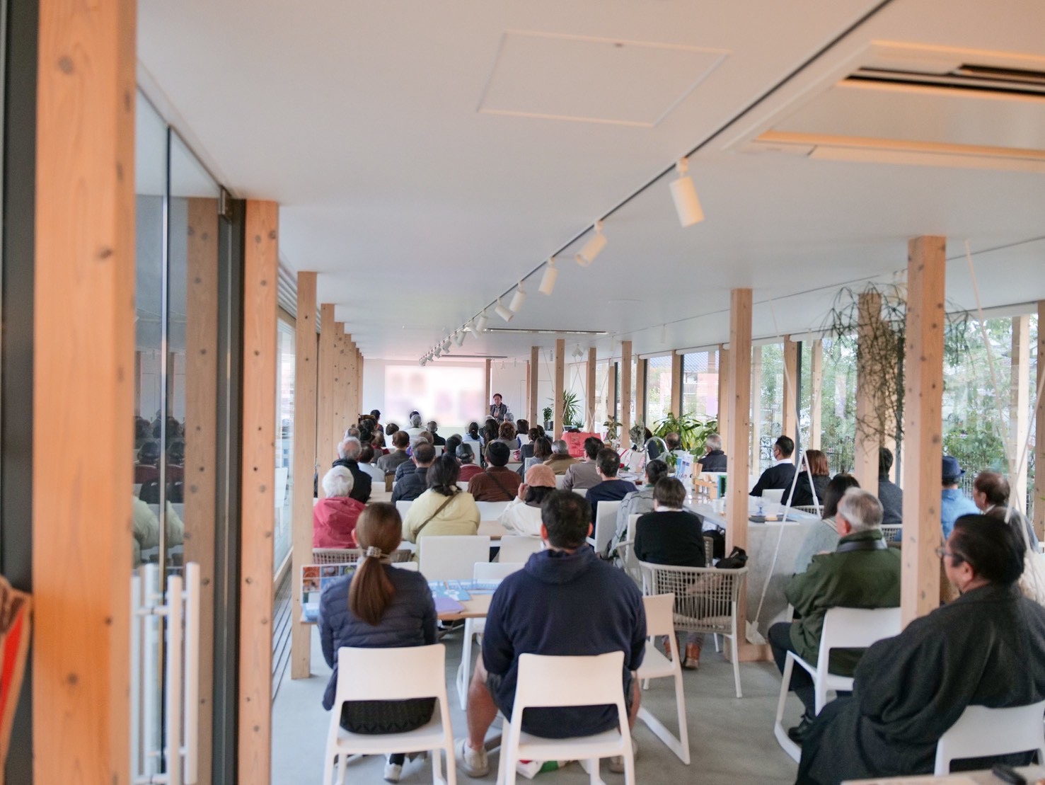 当日は予想を大きく上回る62名の方々にご参加いただき、会場となったカフェは満席となる盛況ぶりでした。地域の皆さまをはじめ、教育関係者や文化活動に携わる方々にも多数ご来場いただき、学びを通じた新たな交流の場ともなりました。