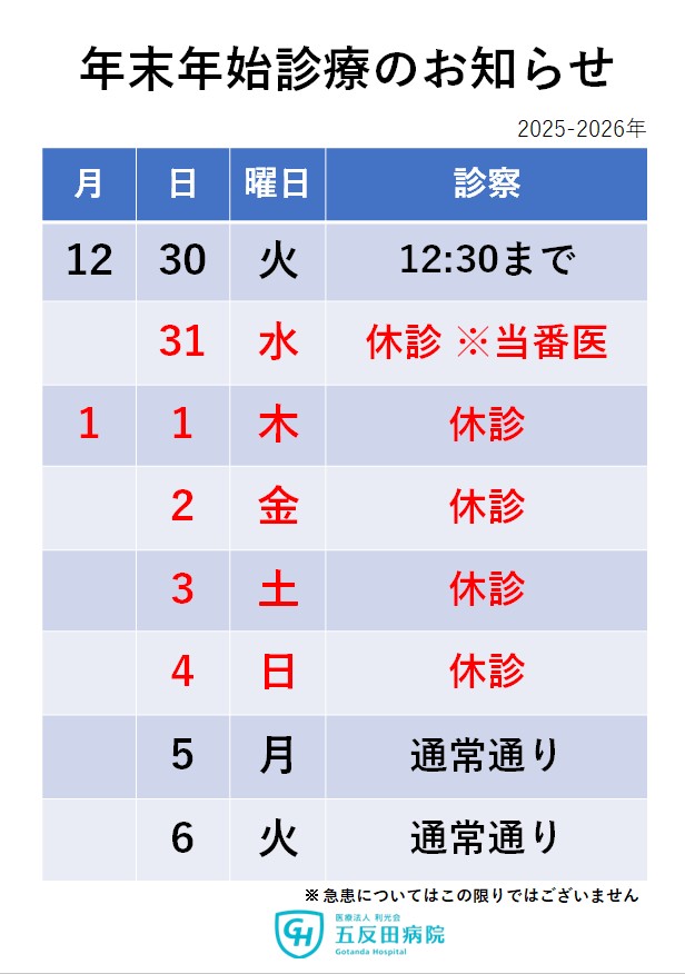 2025-26 年末年始の外来診療について