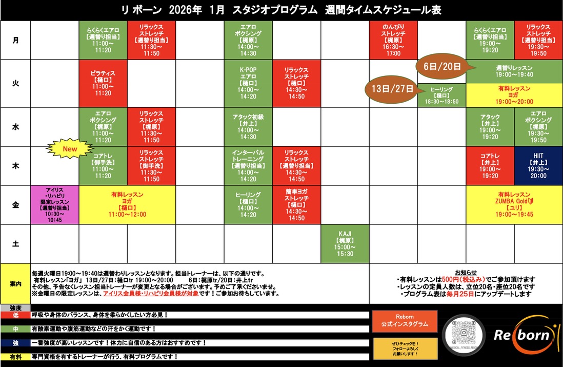 お好きなレッスンを見つけて、今年も楽しく一緒に身体を動かしましょう!