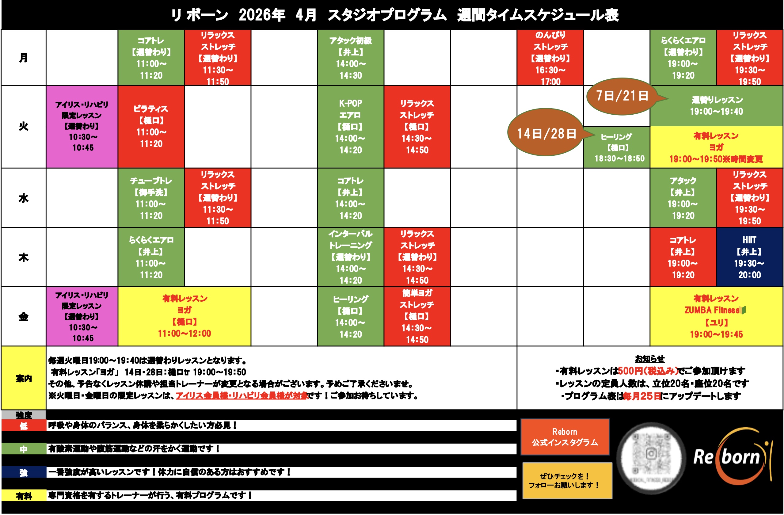 🌸 4月のスタジオレッスンスケジュール 🌸