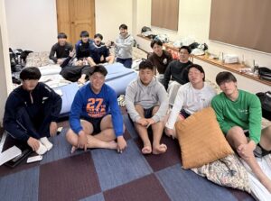 当院では、日頃からコンディショニングを行っている選手たちに対し、一人ひとりの状態に合わせたテーピングや入念なウォーミングアップ指導を実施しました。また、宿泊先でもマッサージ等のケアを通じた密なコミュニケーションを図り、万全の状態で試合に臨めるよう心身両面からサポートに努めました。