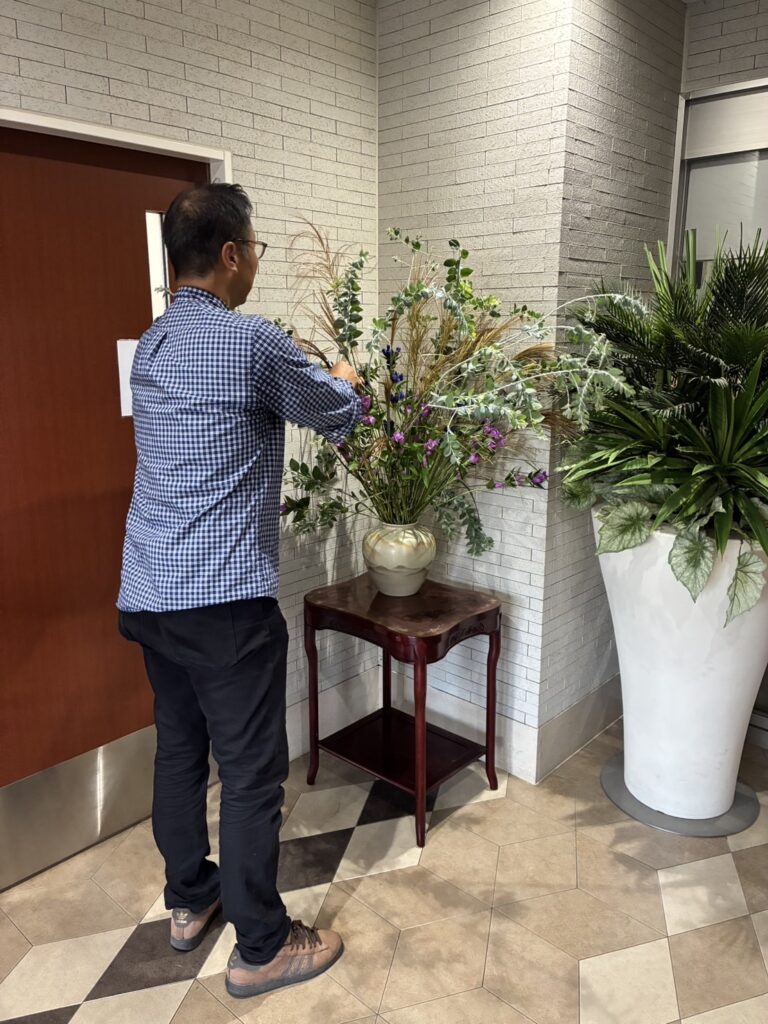 9/18のデイケアでの午後のレクリエーションは、華道家・一木普一先生をお招きしての特別イベント。